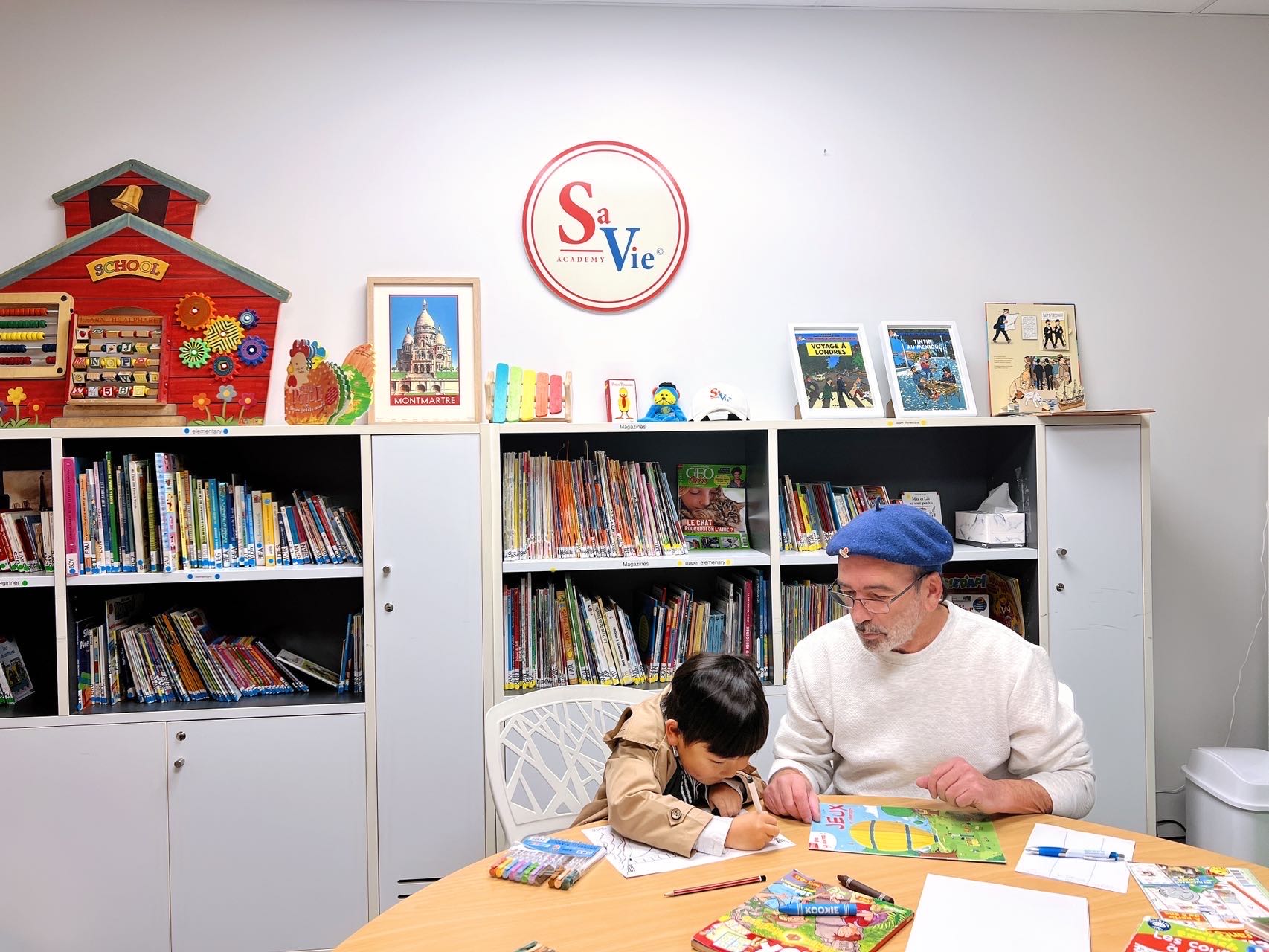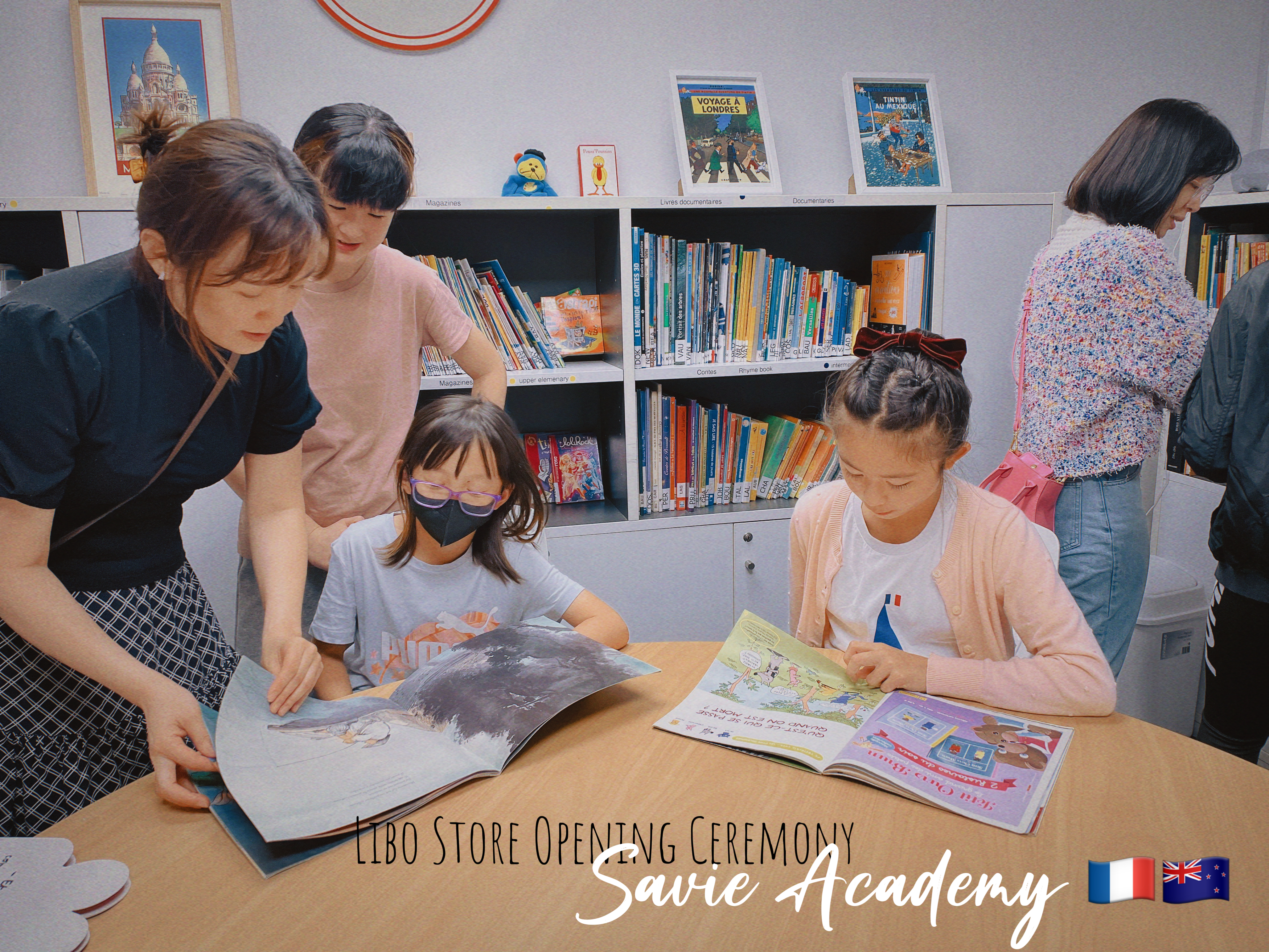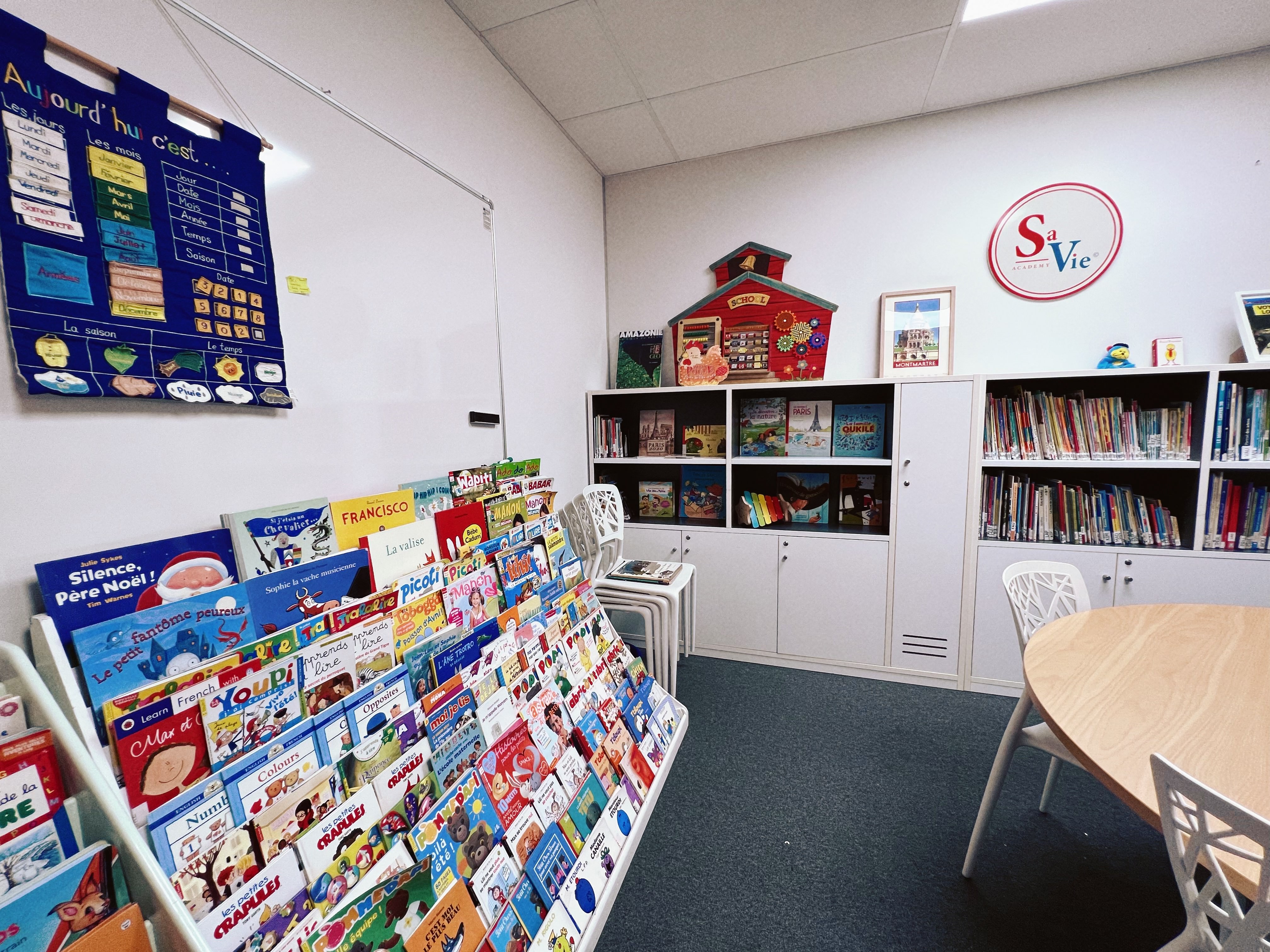 Savie线下的专业法语图书馆,收录了儿童阅读绘本近10,000册,包括:期刊杂志、漫画、儿童报刊、文摘、生活百科、科学、分级绘本、故事传记等多种题材。 以不同的颜色标签为指导,一目了然帮助家长和学生了解阅读难度和分级。线下图书馆配合多媒体线上查阅工具,打造了纽澳唯一支持英法双语搜索的专业图书管理系统, 同时配有手机APP和ipad友好界面,支持多平台实时在线阅读和资料查询。
